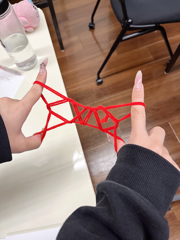 皆さん真剣にどの紐をどのようにすれば目標の形ができるか試行錯誤していました。