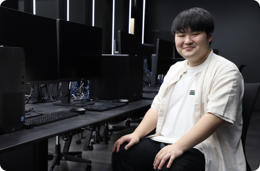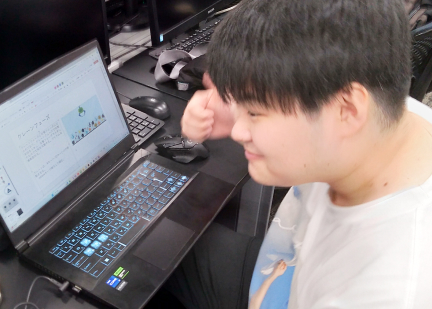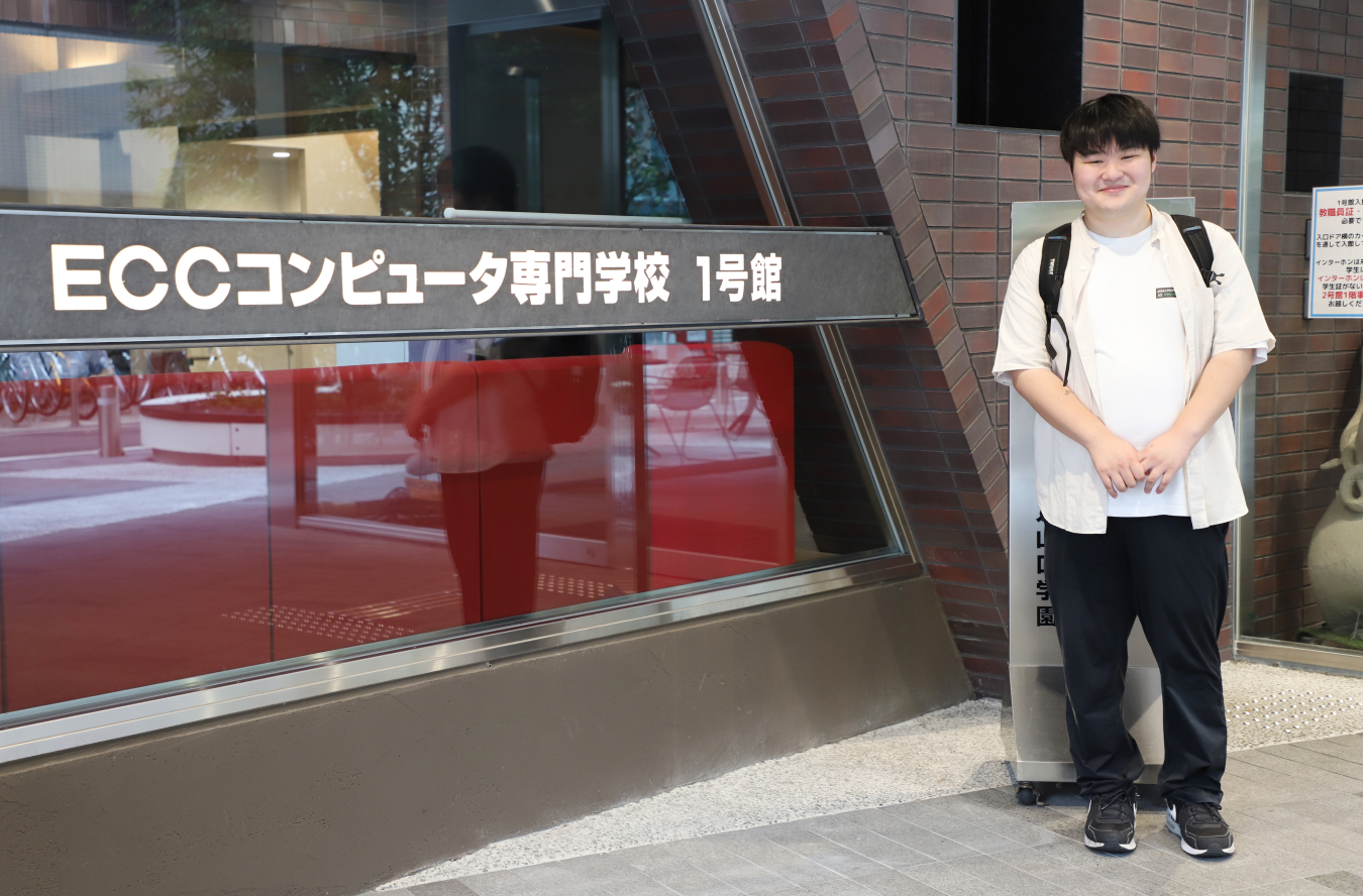 現在、ECCコンピュータでゲームプログラムを学んで2年目。ガッツリ専門的な授業ばかりなので、プログラミング初心者の僕は必死についていく毎日です。とはいえ、先生たちは優しいですし、クラスは男子ばかりのまるで男子校。とにかく楽しいです。授業でわからないことがあるといつも助けてくれる友人たち。彼らの存在は心強いですね。将来はプログラマーを目指し、2年後の就活に向けて頑張っています。