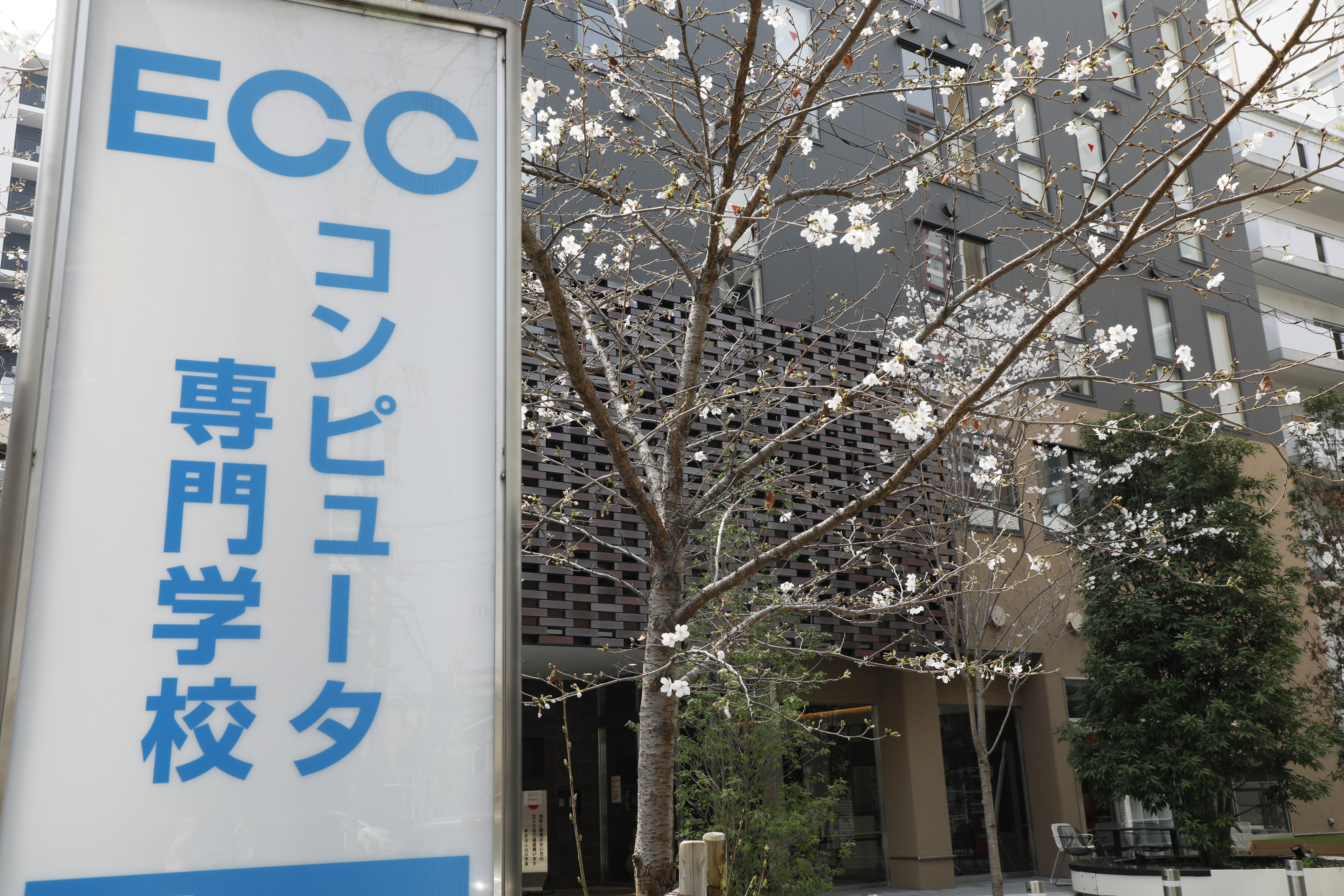 実はこの桜が咲いている校舎、同じ山口学園にあるECCコンピュータ専門学校の校舎なんですよ☺!